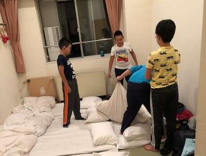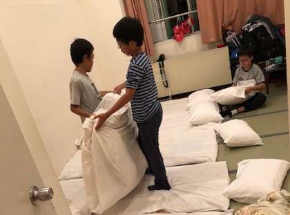 キャンプファイヤーも無事に終わり、仲良く就寝です。