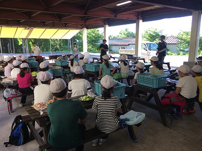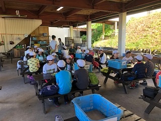 ホットドッグづくり、まず説明を聞きます。