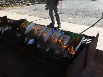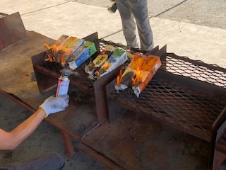 アルミはくを巻いて、牛乳パックに入れてから焼きます。