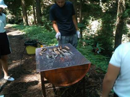 獲った魚を焼いてもらい、かぶりついていただきました。