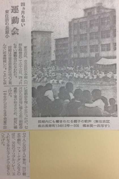 当時は“平野区”ではなく“東住吉区”、また、6年生が不在で1〜5年生の合計1170人(保護者1000人)で行われたことなどがこの記事からわかります。
