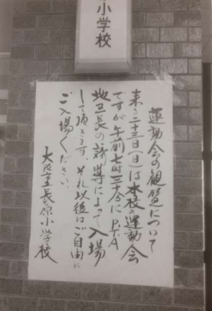秋の校舎増築工事のため、運動会を5月23日に行ったことを伝えています。