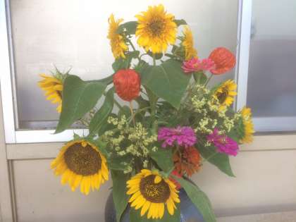 8月20日(月) 緑化推進委員の方が、夏休みの間も絶やすことなくお花を活けてくださっています。