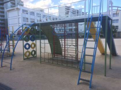 2枚めの写真は、クライミングチェーンのついた現在の複合式遊具です。