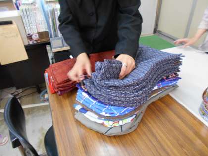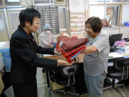 生涯学習ルームの方から、手作りの防災頭巾をいただきました。