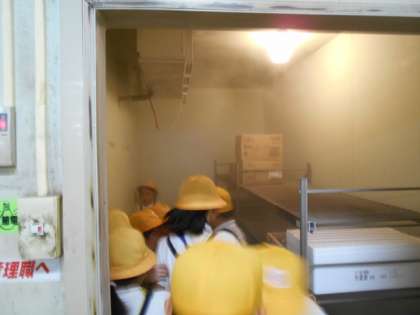 スーパーマーケットのバックヤードや冷凍庫に入らせていただいた子どもたちは大喜びでした。
