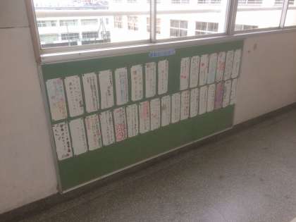 6年生教室前廊下の掲示板に、「運動会のめあて」がはられています。