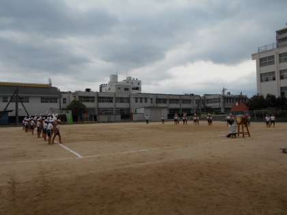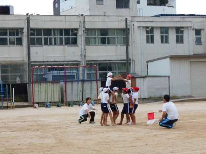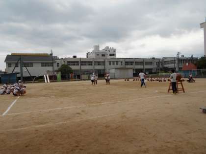 午前中に雨も上がり、昼からは6年生が騎馬戦の練習をしていました。