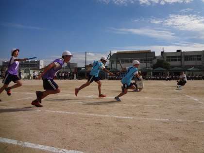 5・6年生 紅白対抗リレーです。