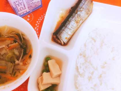 高野どうふの煮もの 米飯 牛乳