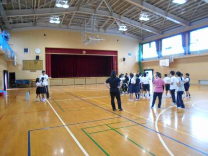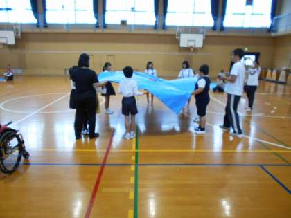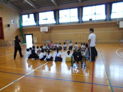 長原小学校講堂で、お昼から平野支援学校の児童と交流活動をしました。