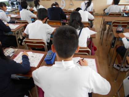 ネイティブの発音する英語を聞き、それをプリントに書きました。