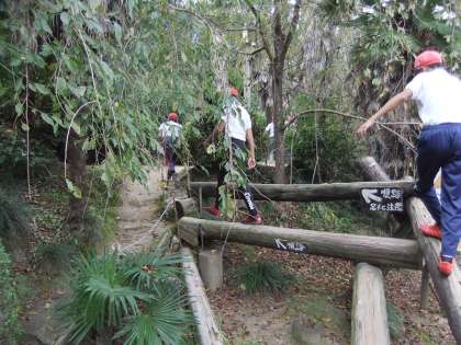 お弁当の後は、山のおやじが作ったアスレチックで楽しみました。