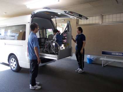 その後、車イスを運ぶ“リフト車”に乗せていただきました。