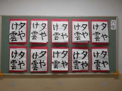 11月1日(木) 6年の階段掲示は、習字“夕やけ雲”です。