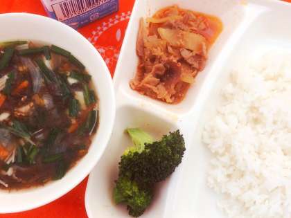献立のねらいは、「学校給食の献立をもとに、韓国・朝鮮料理風にアレンジし、他の国の食について考えるきかっけになればと思いました。」だそうです。