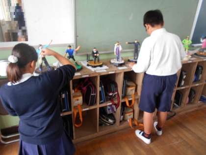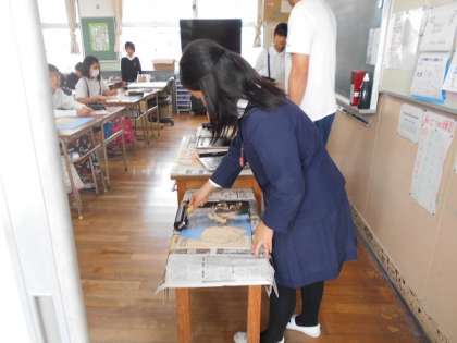 6年生は、版画を刷ったり立体作品にニスを塗ったりして、作品を仕上げていました。