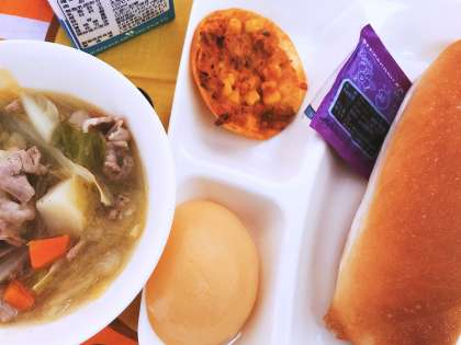 豚肉と野菜のスープ煮 変わりピザ 白桃(缶)