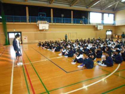 長吉中学校の生徒たちの職場体験2日目、児童集会の時に自己紹介をしました。