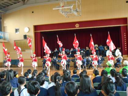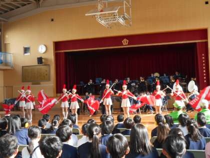 防犯教室の後は、カラーガード隊「フレッシュウインズ」によるフラッグ演技は警察官らしい躍動感あふれ華やかなものでした。