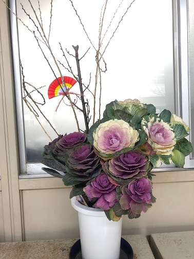1月10日(木) 緑化推進委員さんが職員室前に、お正月をイメージしたお花を飾ってくださいました。