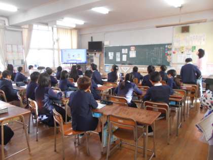 朝の校舎に、各クラスの英語の歌声が響いています。