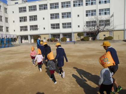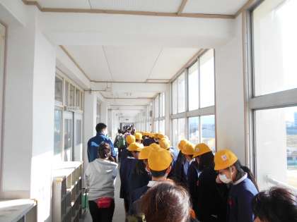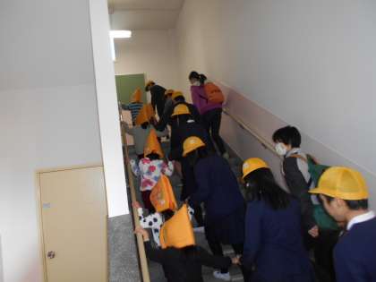 長吉第二幼稚園の園児たちもいっしょに4階まで避難しました。