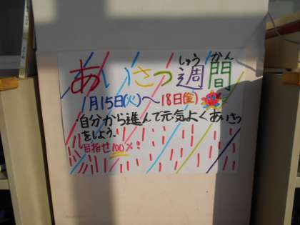 ろうかのあちこちに“あいさつ週間”を呼びかけるポスターがはられています。