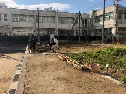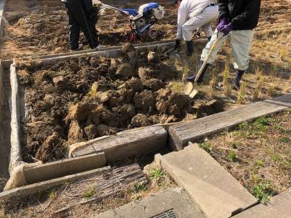 耕運機やシャベルなどを使いながら、お昼過ぎには整備が終了しました。