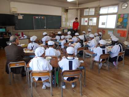 今日は1年生の給食のゲストに、薬剤師の佐々木さんが来てくださいました。