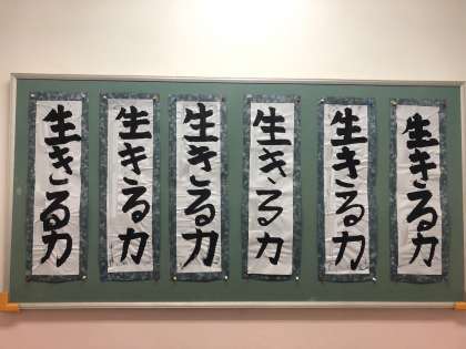 1月31日(木) 3年生の階段掲示は、習字“生きる力”です。