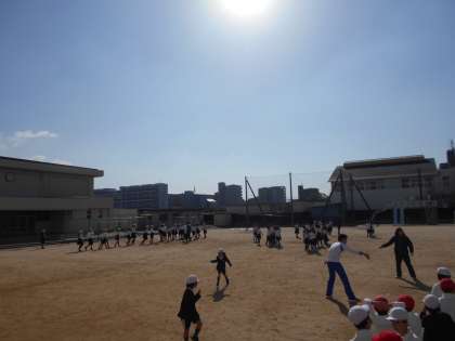 今日も晴天の下、元気になわとびタイムを行いました。
