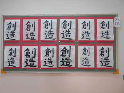 2月5日(火) 6年生の階段掲示は、習字“創造”です。
