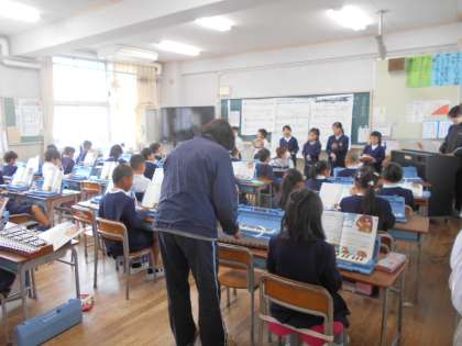 けんばんハーモニカ、大太鼓、タンバリン、トライアングル、すず、鉄琴、木琴・・・