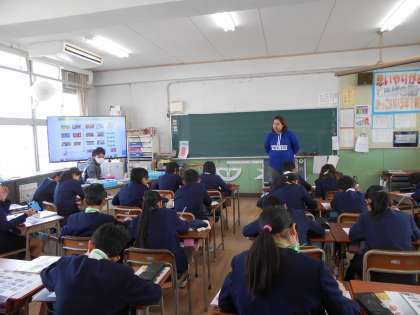 地図を使いながら、“まっすぐ”“右に曲がる”“左に曲がる”などを英語で学びました。