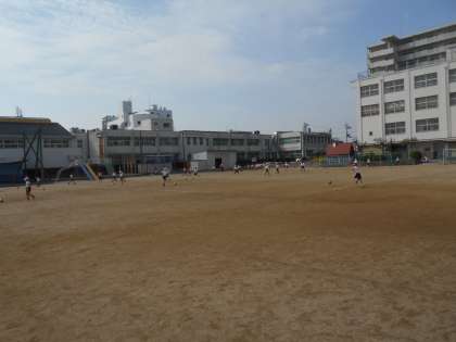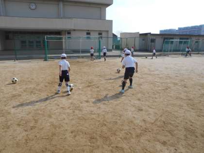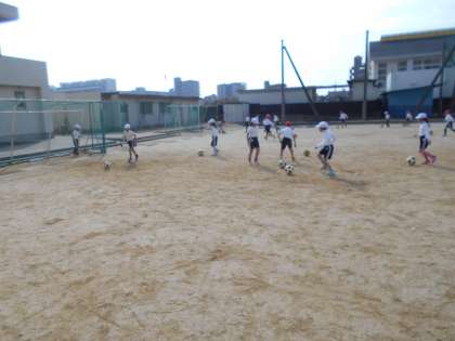 子どもたちは運動場いっぱいにボールをけりながら走り回っていました。