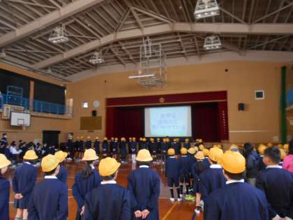 児童朝会で、ありがとう集会の歌の練習を行いました。