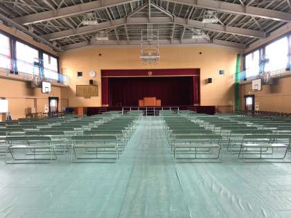 卒業式に向けて、講堂のシート敷きと椅子並べを行いました。