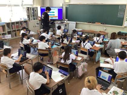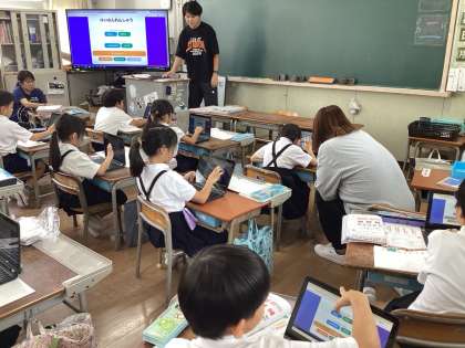 子どもたちはタブレットに向かって先生が作った教材にチャレンジしています。