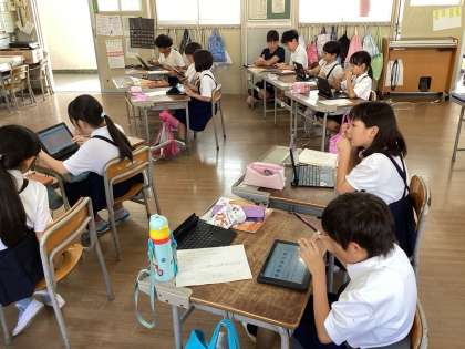 一人ひとりの考えを吸い上げる方法として、またみんなで共有する方法として有効に使われています。