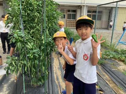 1年生の子どもたちが育てている野菜たちが大きく成長しています。