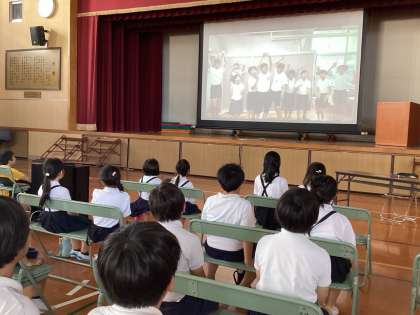 子どもたちからは、ビデオメッセージで、ただしい姿勢についての映像が上映されました。良い時と悪い時をどこかのCM風につくられた映像は、ユーモアの中に大切なことを届けてくれるメッセージがしっかりと詰まっていました!子どもたちの名演技に拍手でした!