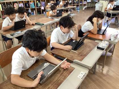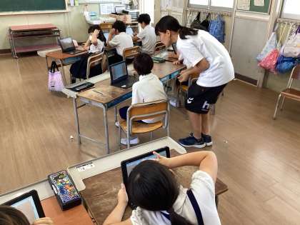 子どもたちは一人一人がタブレットに向かって何やら操作していました。