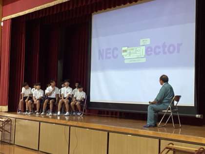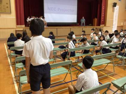 子どもたちが長原小学校のことを植松さんに伝えます。