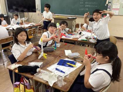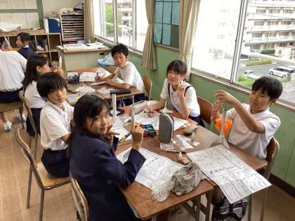 高学年チームの子どもたちが教室に帰って、ロケットづくりに夢中になっています。