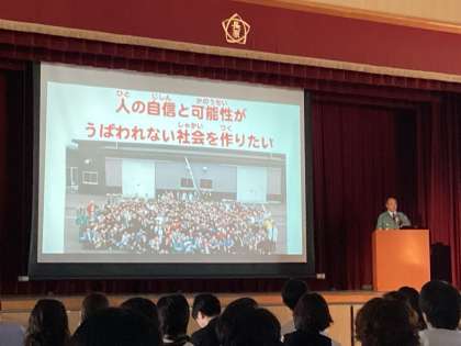 植松努様、全国を飛び回られ、本当にご多用の中を、今日大阪の地に降り立たれ、長原小学校に来ていただけたことに改めて感謝の気持ちを伝えます。