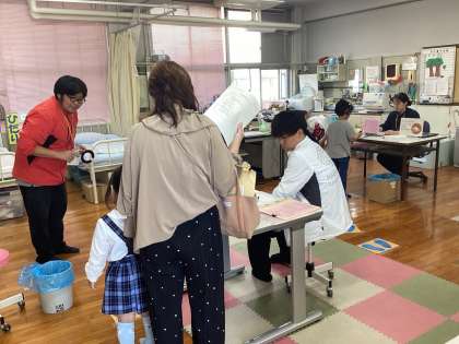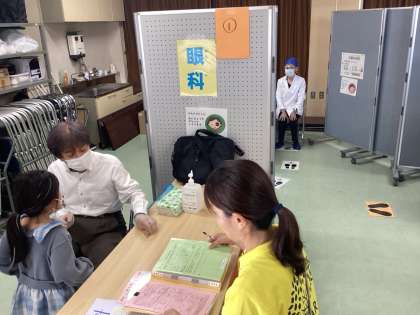 これまで体育館で行ってきた検診をコンパクトに多目的室に場所を変え、一人ひとりの子どもたちを丁寧に健康診断させていただきました。