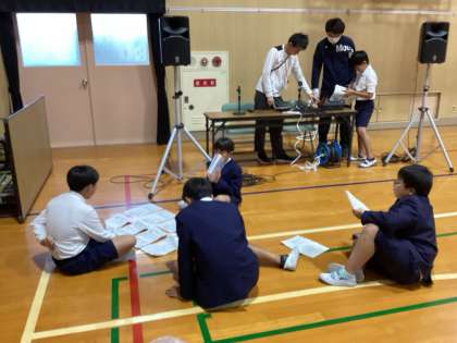 体育館を使って放送や準備係の仕事のチェックを行いました。