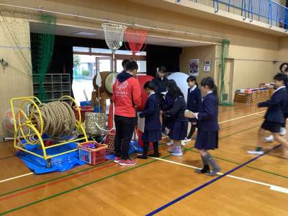 あいにくの雨模様の中、456年の子どもたちが、明日の運動会に向けての準備に入りました。