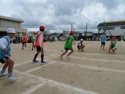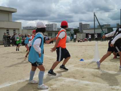 中学年チームのリレー、「ゴールをめざして、バトンをつなげ!」では、一人ひとりの一生懸命に走る姿やバトンを手渡すときの必死な顔がとても見ていて、手に汗握る瞬間でした。